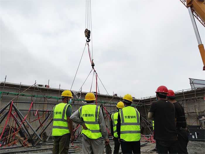 6.为确保.东港加油站球形网架安装顺利,应有详细的东港施工组织设计。网架安装必须保证结构的稳定性和不产生的附加变形。